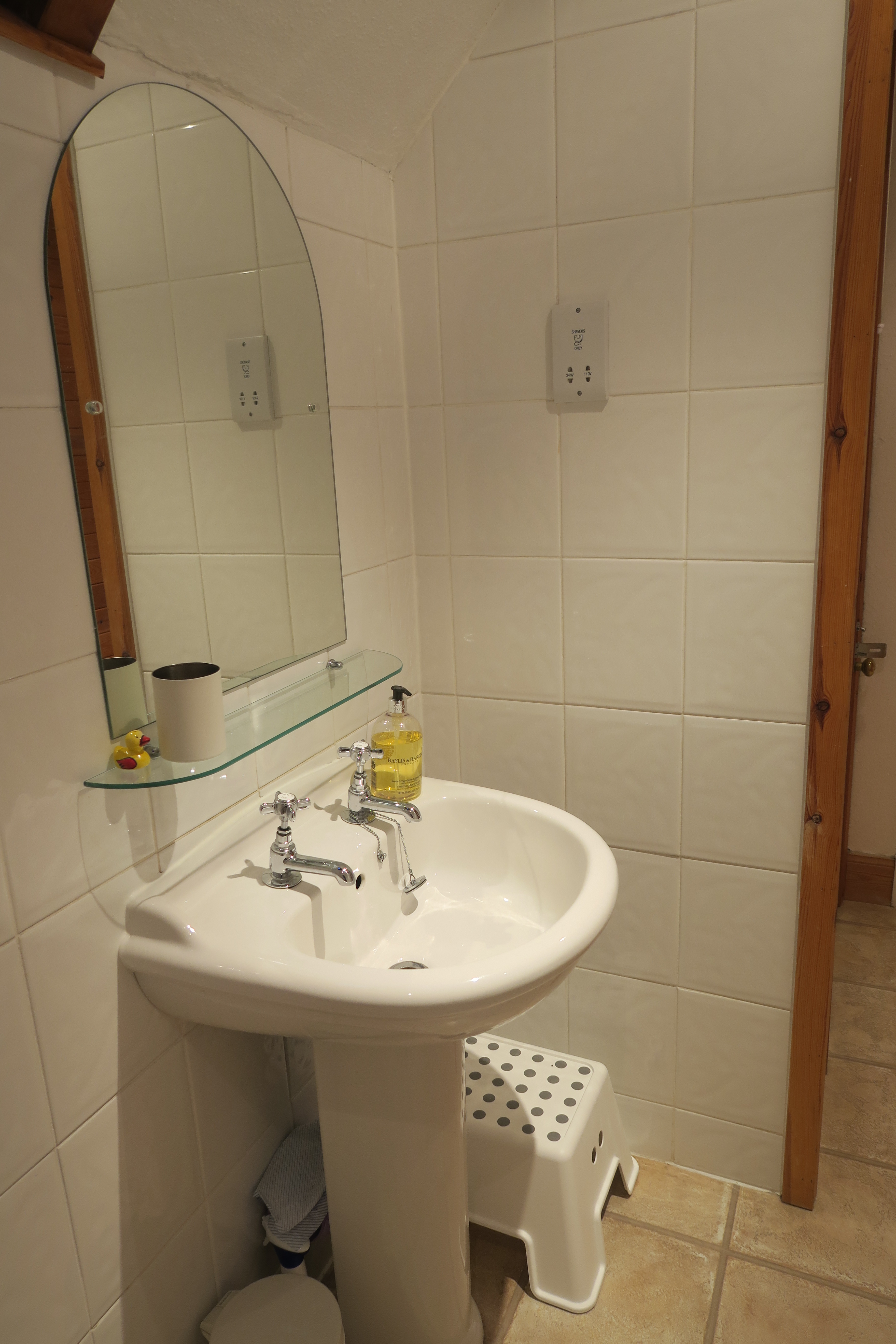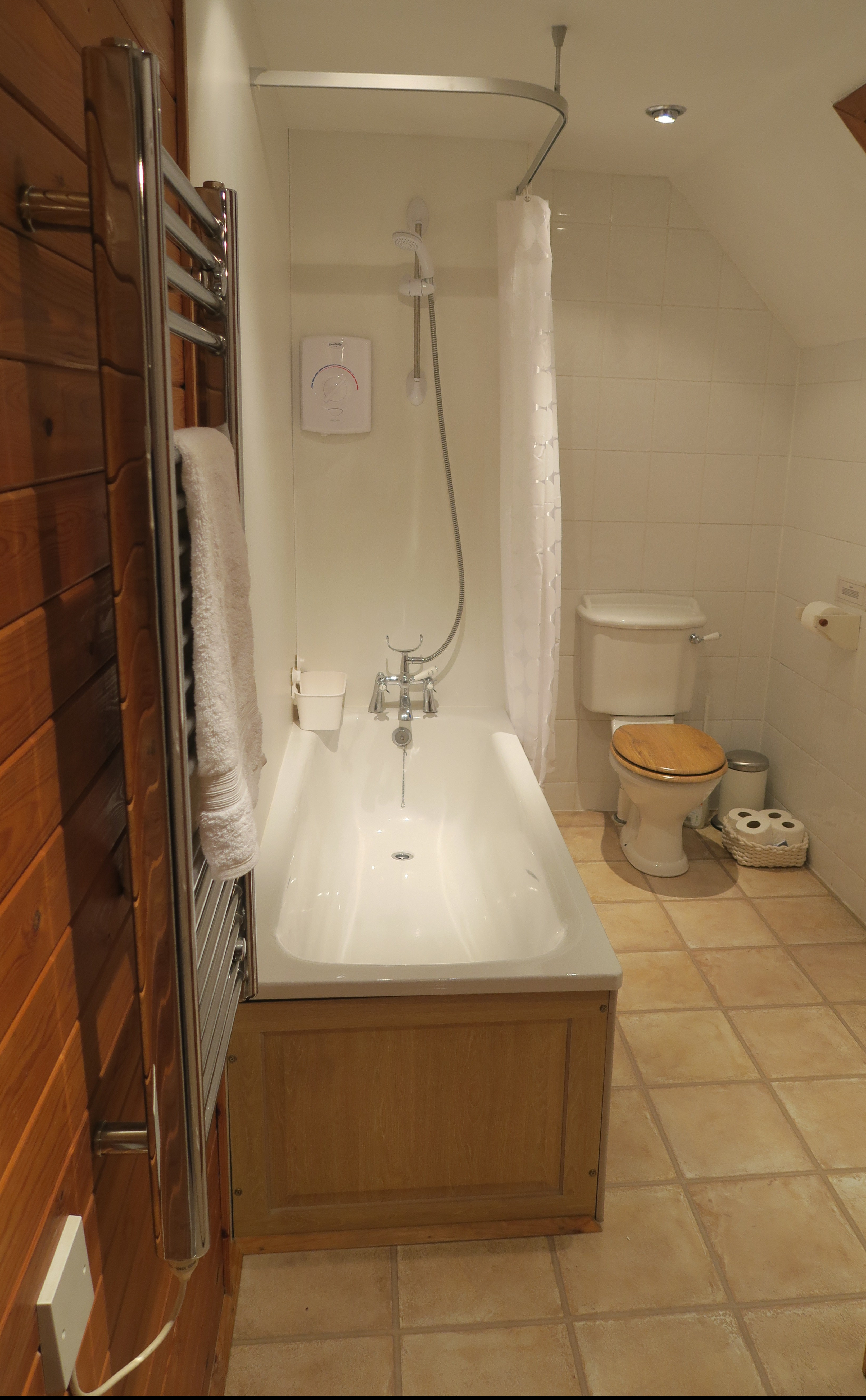 The bathroom is also upstairs and has a shower over a full-sized bath, wash-hand basin, heated towel rail and WC.