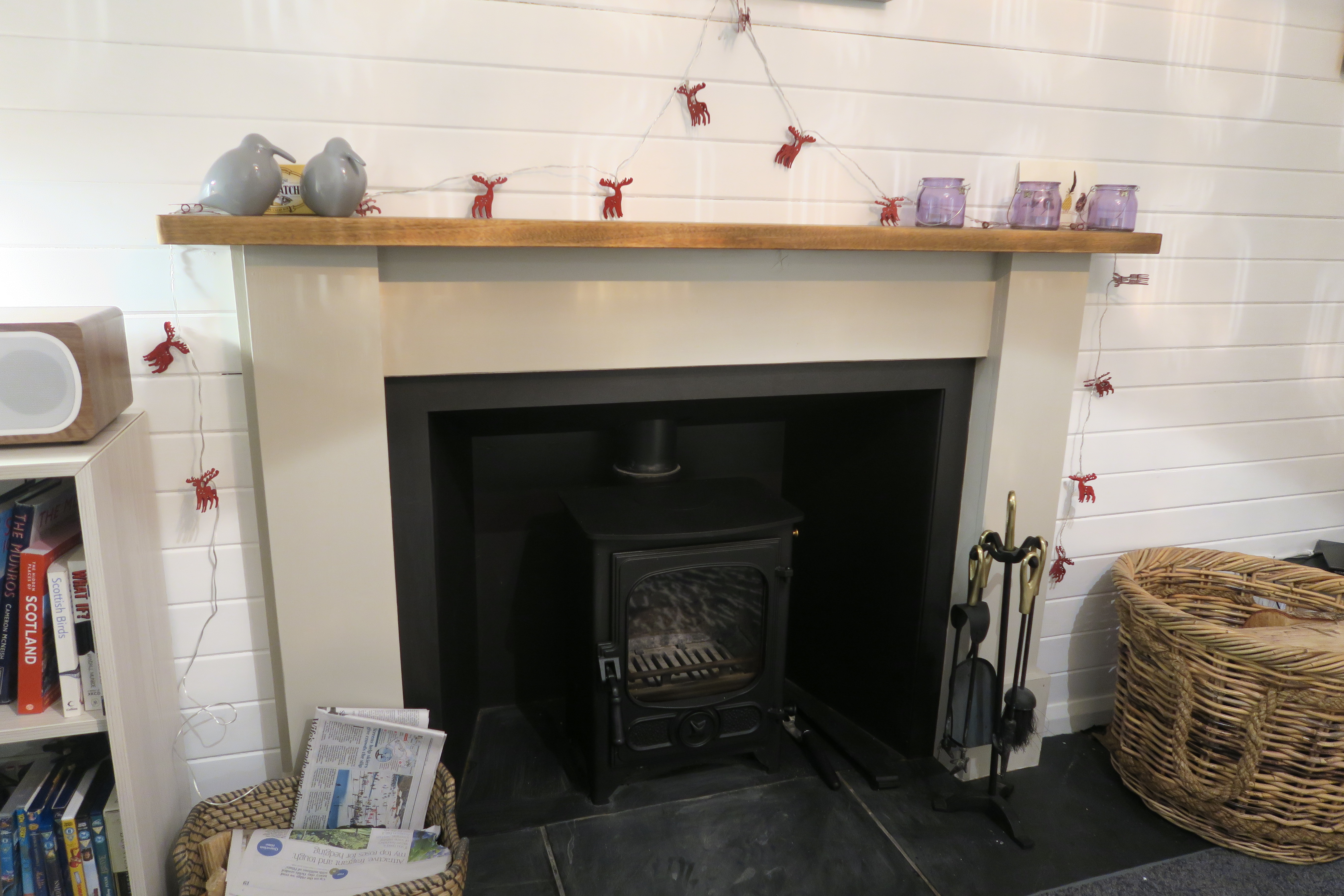 The cosy living room has leather sofas to lounge on and a log burning stove to keep the cold away. The TV has Freeview and Freesat channels and there is a DVD player that can also be used to watch BBC iplayer. You will love our multi-room Sonos sound system, which can be used to stream from Spotify, or your own wireless device. Or listen to CDs and the radio on the Pure Evoke C-F6.